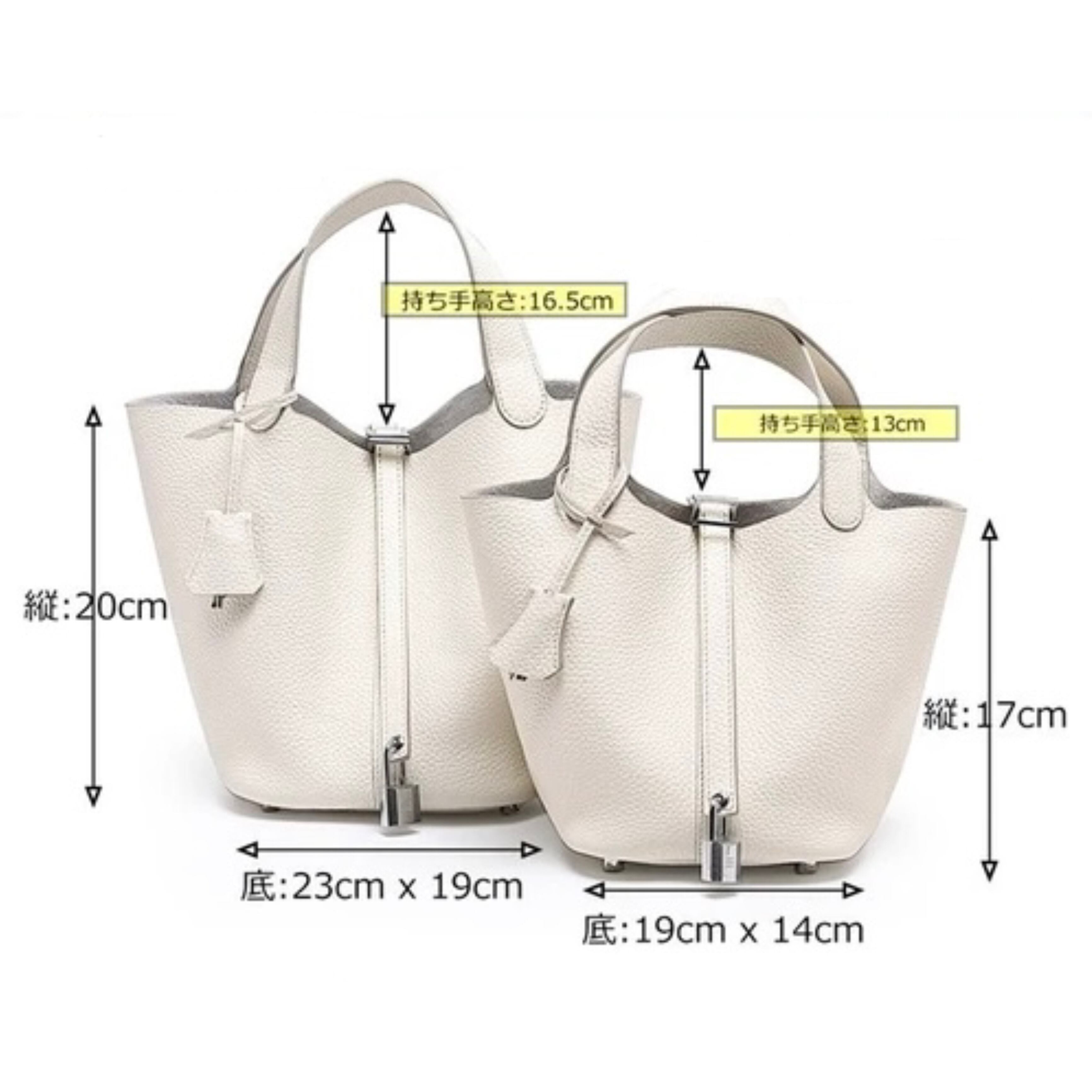 底:19cmX14cm、縦:17cm、持ち手高さ:13cm