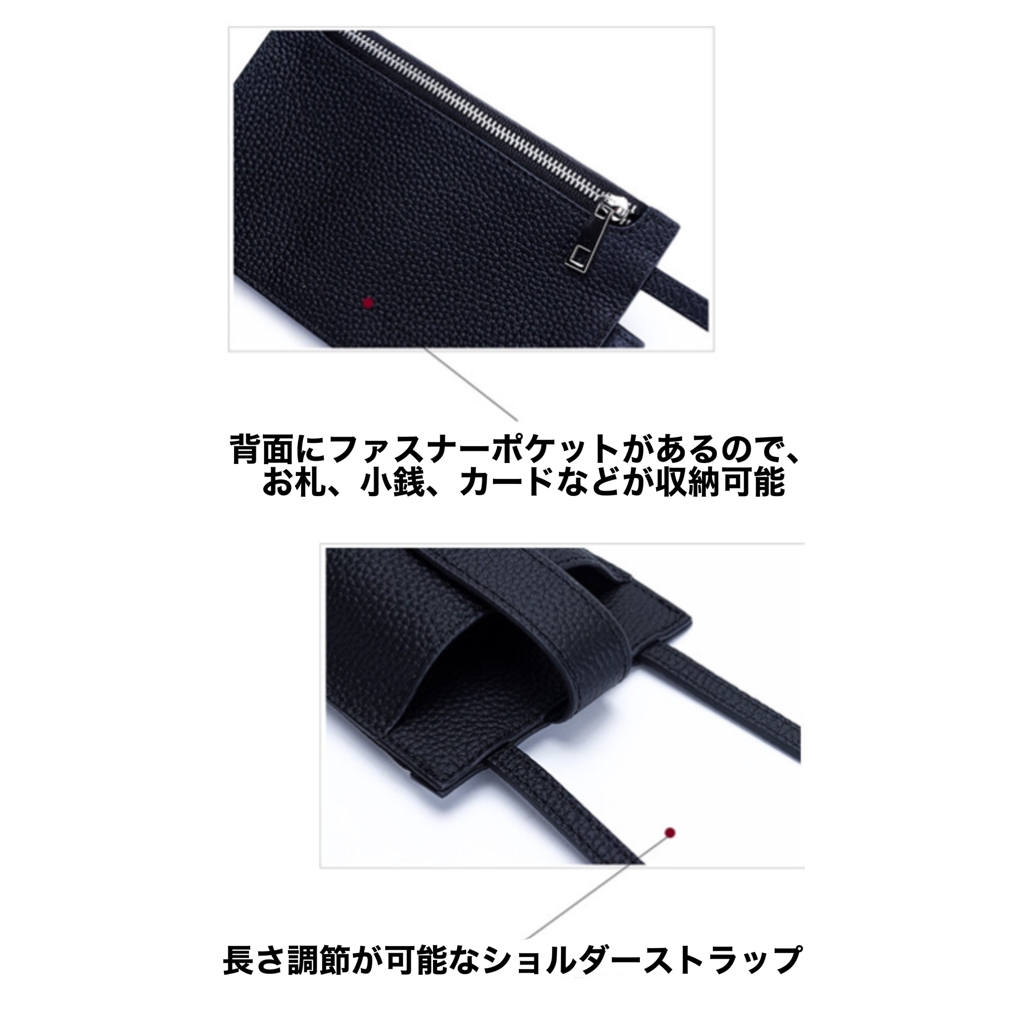 仕様 : スマホ入れ×1、背面ファスナー付きポケット×1